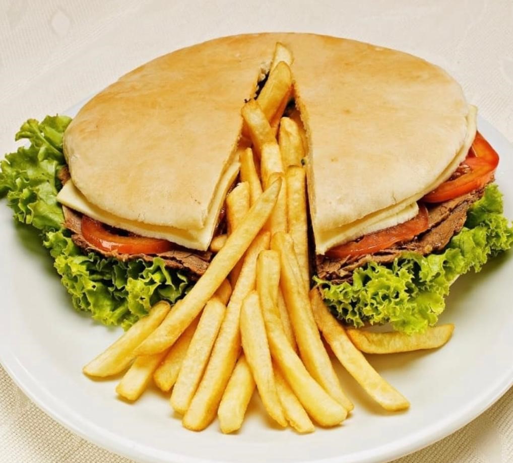 FILÉ DE FRANGO, ALFACE, TOMATE, MAIONESE, QUEIJO e BATATA FRITA